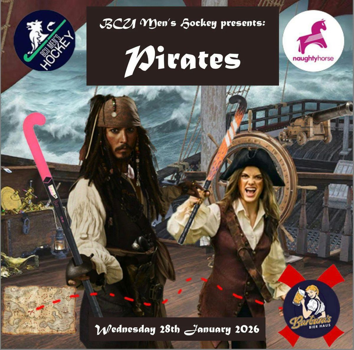 BCU Mens Hockey brings you the return of their legendary PiratesMassive drinks offers all night long - £4.50 double vodka mixers, £3.50 pints of beer/cider, 4 bombs for £12 and many more!