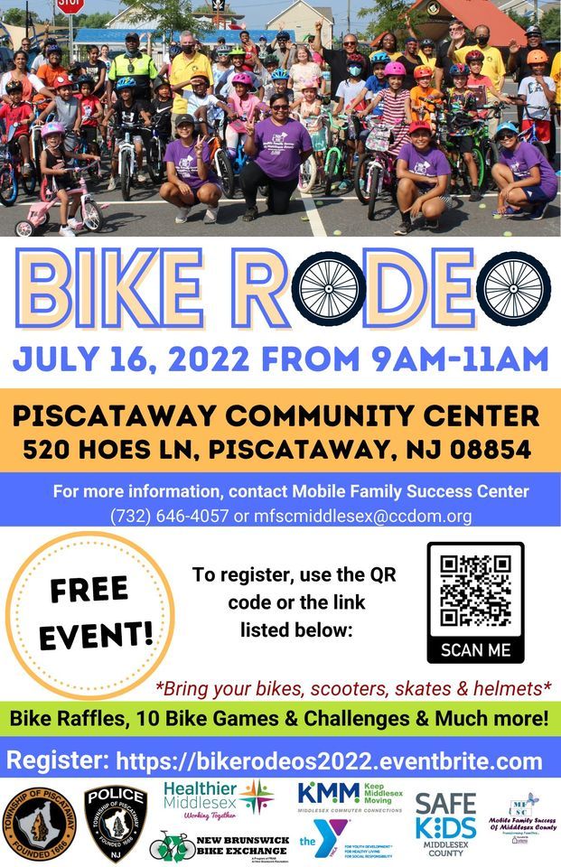 This July 16th. Join MFSC its annual event Piscataway Bike Rodeo at the Piscataway Community Center. Learn about bike safety while playing 10 bike games and challenges. There are also various raffles!To register for this event go to Eventbrite link: https://bikerodeos2022.eventbrite.com