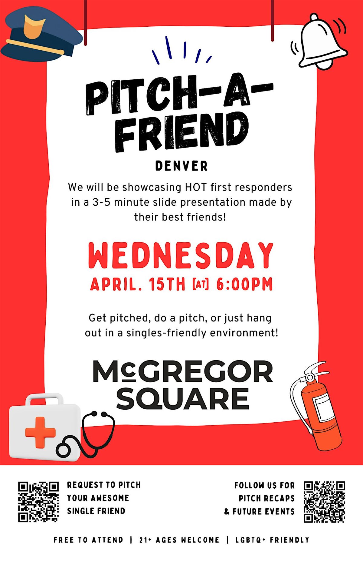 Pitch-A-Friend Denver is coming to McGregor Square with a special First Responders Edition — a fun, singles-friendly night dedicated to showcasing eligible first responders in a totally unique way.