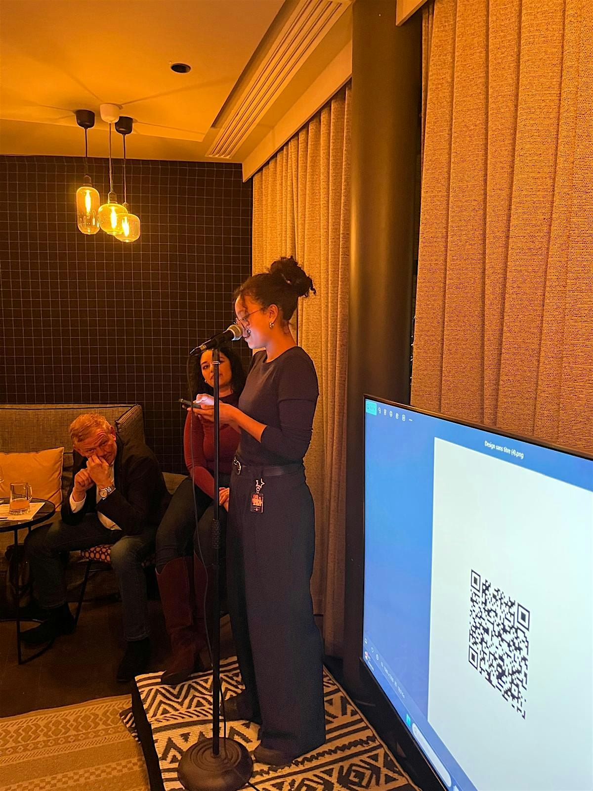 - A la fin de la présentation, le public peut poser des questions