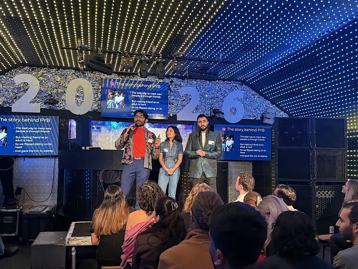 ✨ 4 rounds – 3 bestie pitches per round – max 5 mins each ✨The post-pitch mingle is where the real fun (and flirting) begins.
