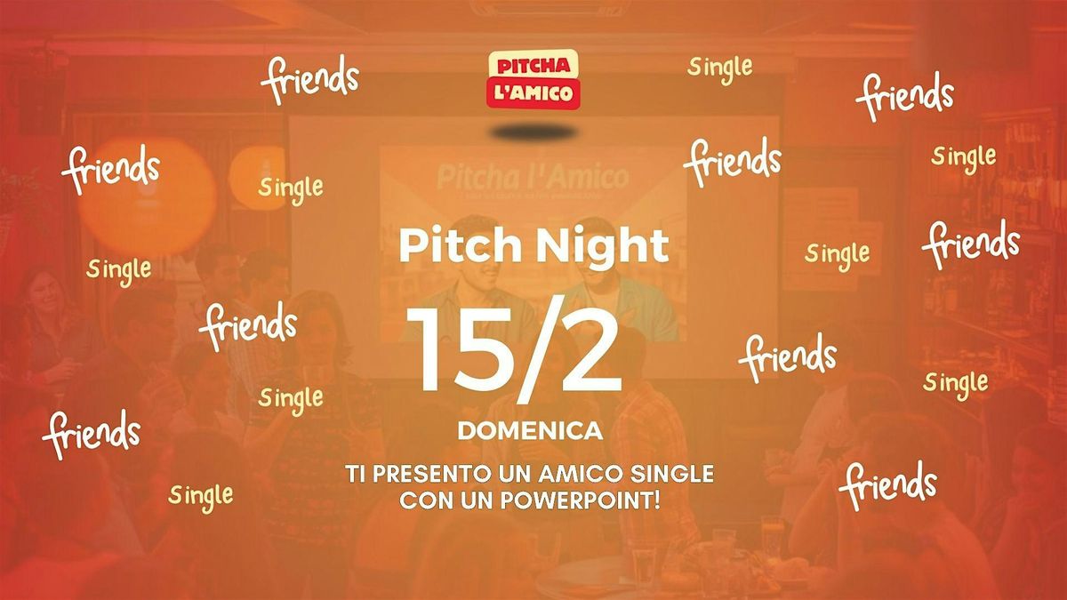 Pitcha l’Amico è un evento dal vivo dove i single non si presentano da soli… ma vengono raccontati dai loro amici, che con una presentazione in PowerPoint divertente e piena di aneddoti, raccontano chi sei: storie su di te, figuracce memorabili, avventure indimenticabili e tutto ciò che ti rende unico.