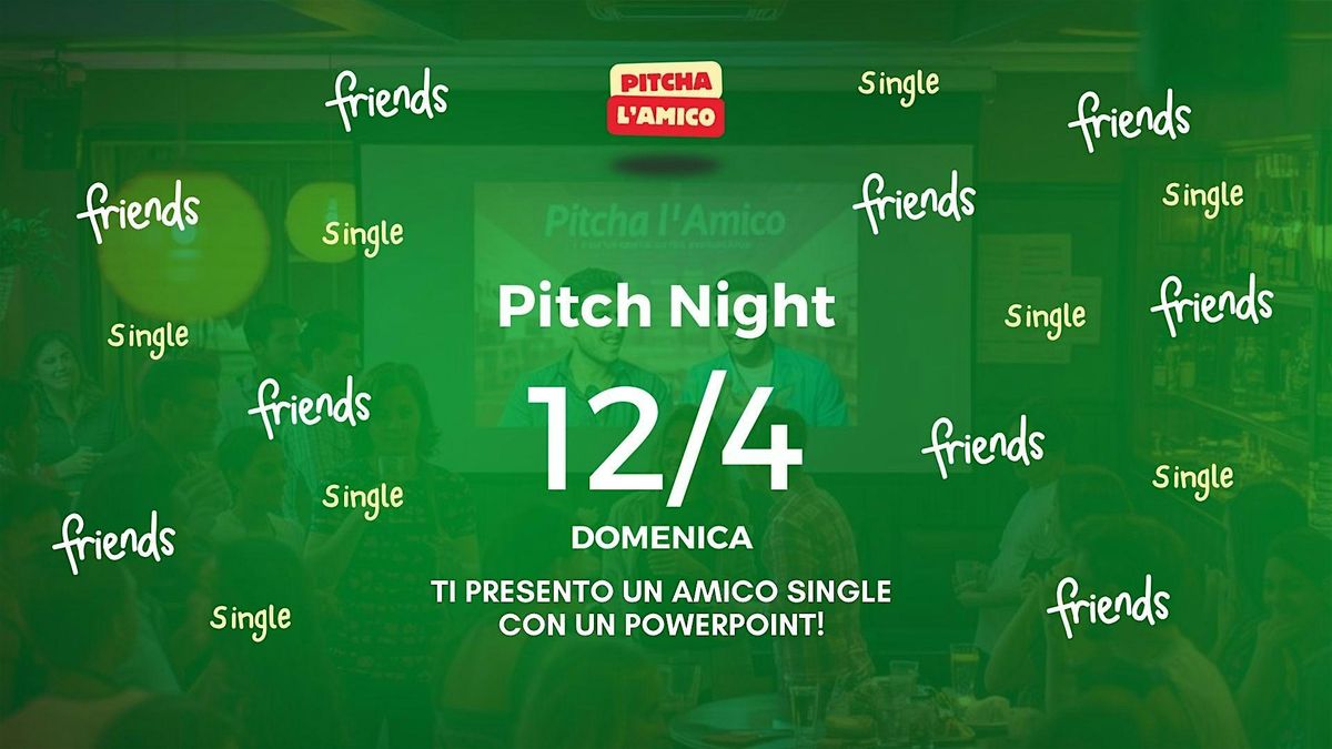 Pitcha l’Amico è un evento dal vivo dove i single non si presentano da soli… ma vengono raccontati dai loro amici, che con una presentazione in PowerPoint divertente e piena di aneddoti, raccontano chi sei: storie su di te, figuracce memorabili, avventure indimenticabili e tutto ciò che ti rende unico.