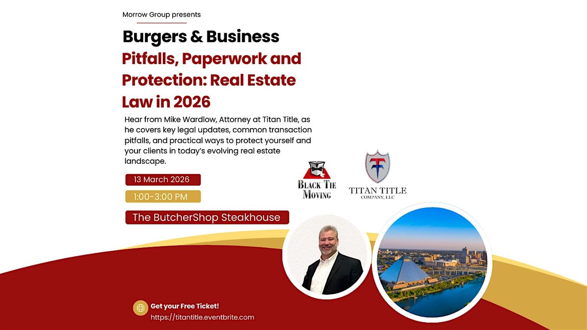 Join us for our next Burgers & Business event featuring Mike Wardlow, Attorney with Titan Title, as he breaks down what real estate professionals need to know heading into 2026.