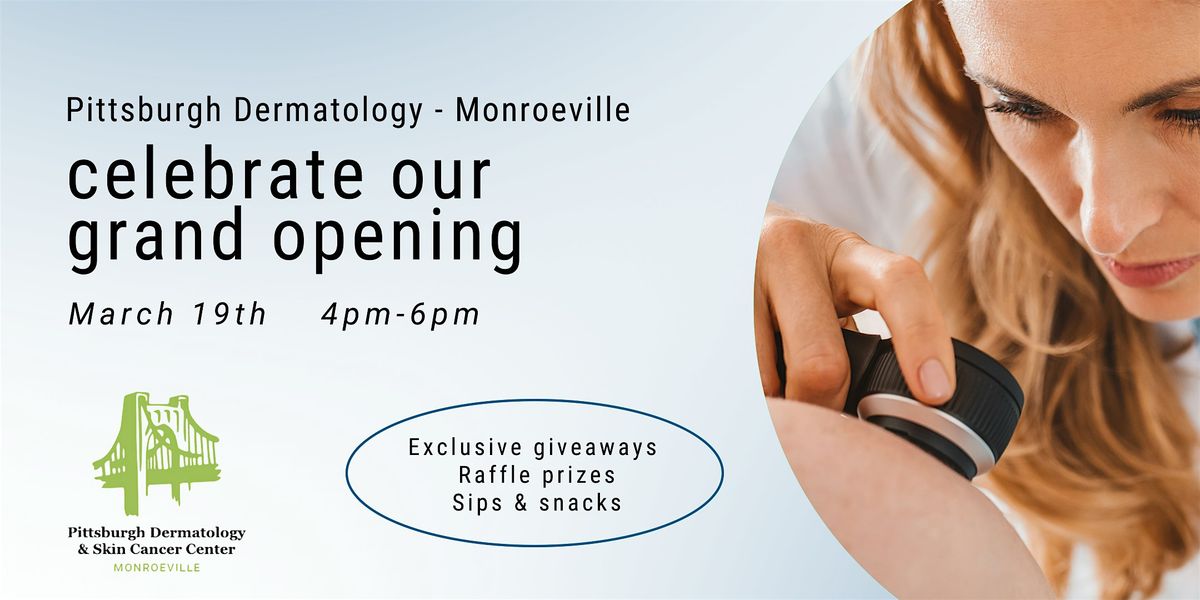 You’re invited to celebrate the grand opening and ribbon cutting of Pittsburgh Dermatology in Monroeville with us! Don't miss our celebratory event on Thursday, March 19th from 4-6 pm.