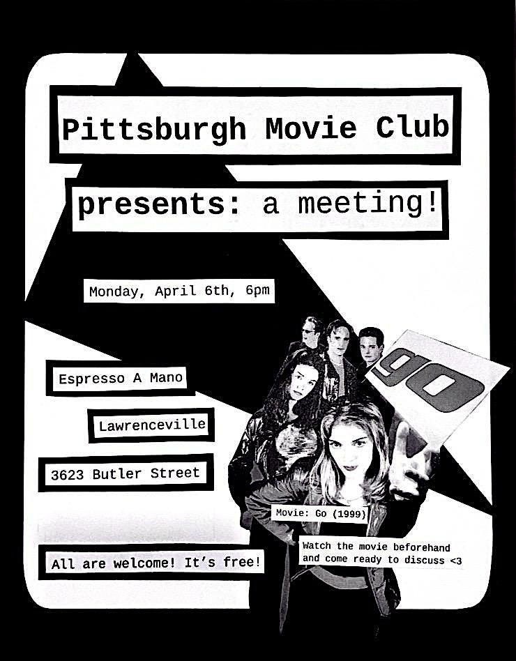 Pittsburgh Movie Club is back, and this time we'll be focusing on Go (1999)! Watch the movie beforehand and come ready to discuss. This event is free, the location is wheelchair accessible, and all are welcome! The coffeehouse will be open during the meeting so come thirsty. :-) No registration required, just show up!