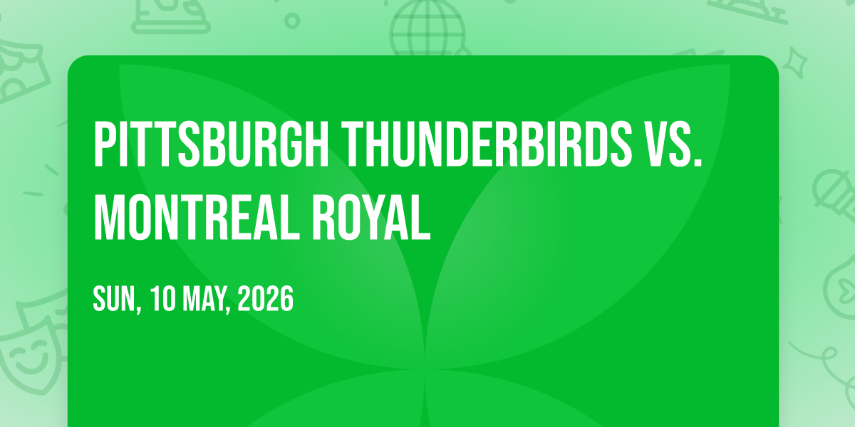 📍 Location: 40.4364, -80.0108🎉 Welcome to Pittsburgh Thunderbirds vs. Montreal Royal, where dreams come alive and possibilities are endless! 🏛️ Join us at Highmark Stadium - PA in the heart of Pittsburgh, PA for an event that defies expectations. 📅 On May 10th, 2026 at 06:00 PM, be part of something truly extraordinary as we bring together innovation, entertainment, and pure magic. ✨ Every aspect has been carefully designed to ensure an unforgettable experience for all our guests. Whether you're seeking adventure, inspiration, or simply a break from the ordinary, this event promises to deliver beyond your wildest dreams. 🎊 Prepare for a journey into the extraordinary!