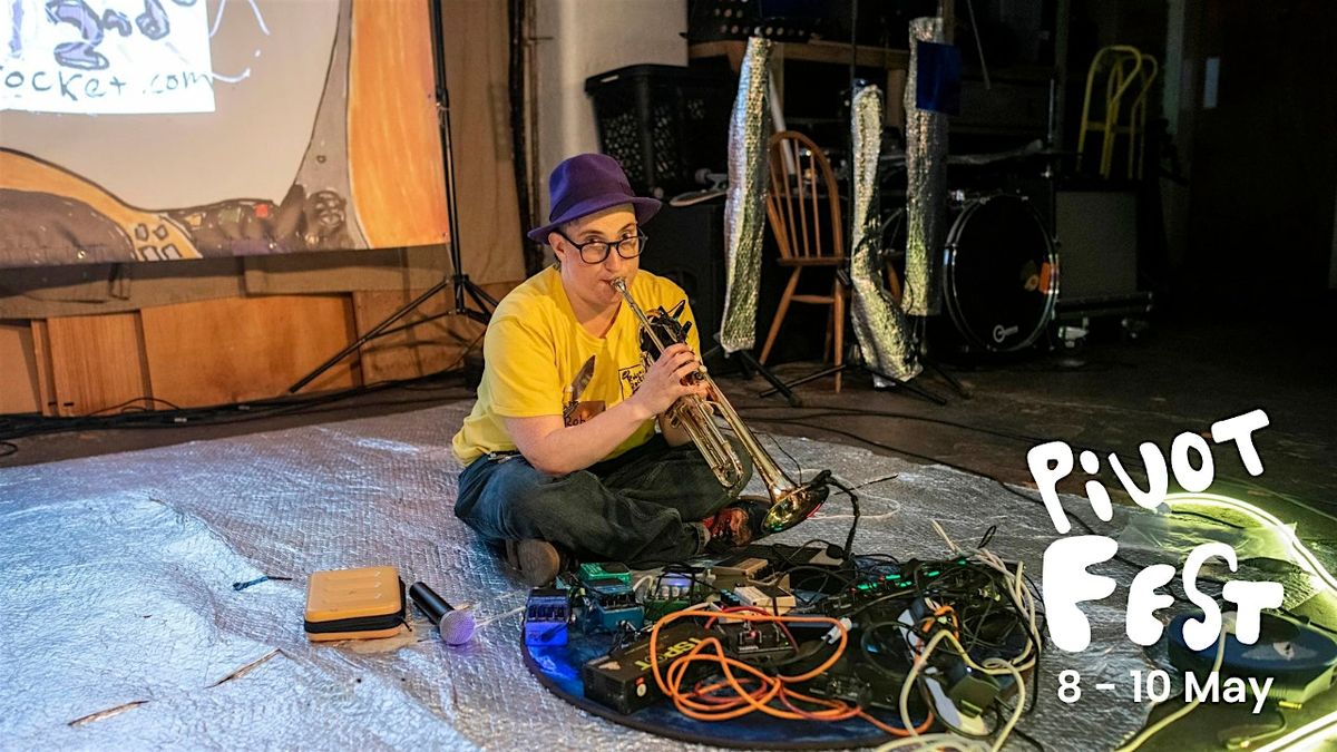 Robyn Rocket performs live with her band, creating an improvised and playful music set using space trumpet, a trumpet played through guitar pedals and loopers. The performance is made in the moment, valuing connection, experimentation, and joy over perfection.