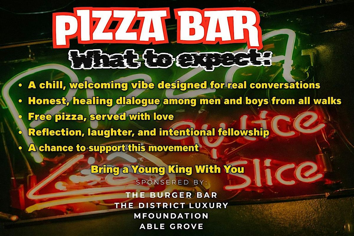 Pizza Bar is intentionally created for young men ages 11–21. This is your space to build friendships, have real conversations, and grow in a community that supports you.