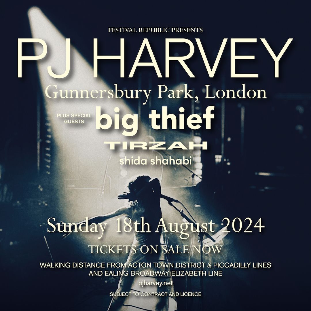 PJ Harvey at Gunnersbury ParkGet tickets for PJ Harvey Big Thief, Tirzah + Shida Shahabi promoted by Festival Republic Presents at Gunnersbury Park in London on Sun, 18 Aug 2024 - 16:00 at AXS.com