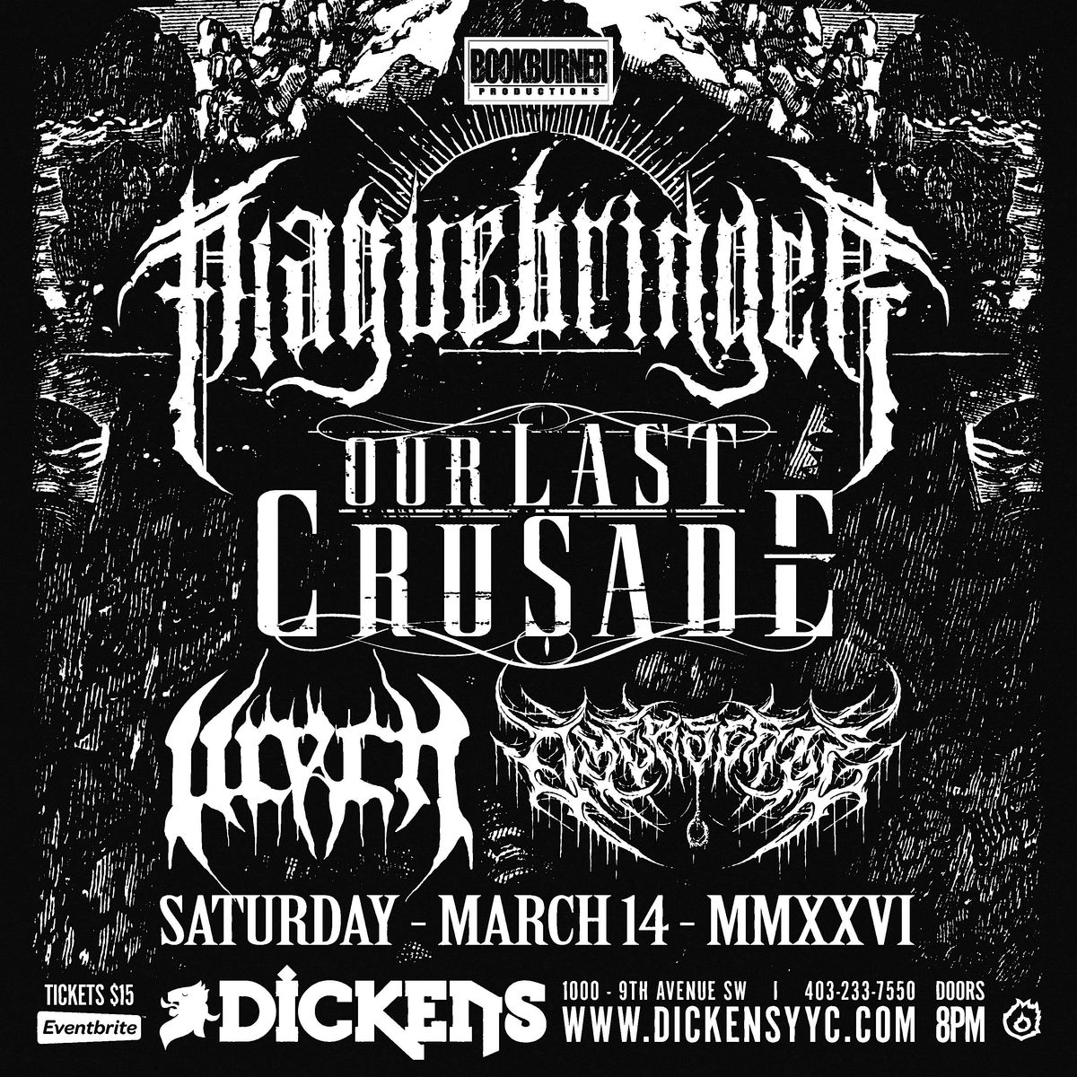 Plaguebringer, Our Last Crusade, Wych, and Dyer's Gate take the Dickens stage on Saturday, March 14.
