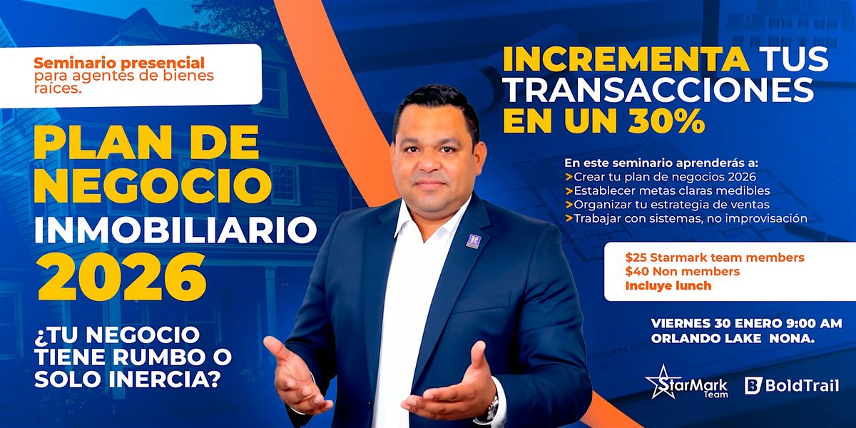 Seminario presencial para agentes que quieren resultados reales. En una mañana construirás tu Plan de Negocio Inmobiliario 2026, definirás metas claras y una estrategia de ventas con sistemas, no improvisación. Saldrás con enfoque, estructura y acciones concretas para dejar de jugar a la casita y empezar a cobrar comisiones.