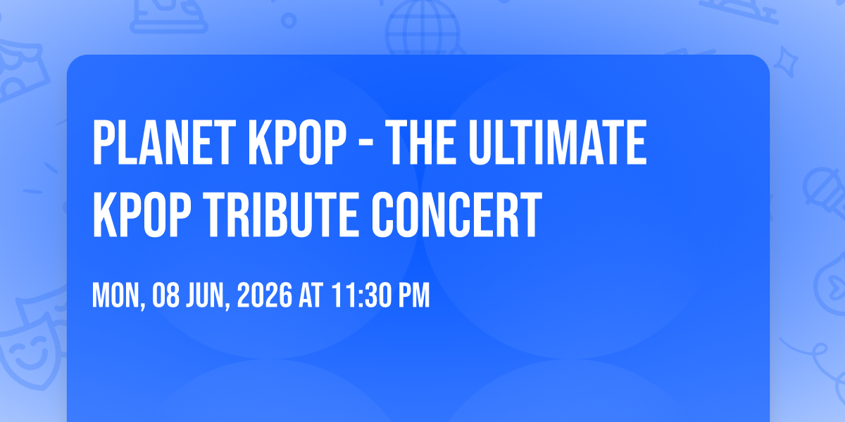 π Location: 40.3379, -75.926π Welcome to Planet KPOP - The Ultimate KPOP Tribute Concert, where the impossible becomes possible and dreams take flight! ποΈ Join us at Santander Performing Arts Center in the heart of Reading, PA for an event that will redefine your expectations. π On June 8th, 2026 at 11:30 PM, witness the transformation of space and time into something truly magical. β¨ It's a curated experience combining the best of innovation, entertainment, and community spirit, creating moments that will be remembered for years to come. Whether you're a first-time visitor or a seasoned enthusiast, prepare to be amazed. π Book now to ensure your place in this unforgettable experience!