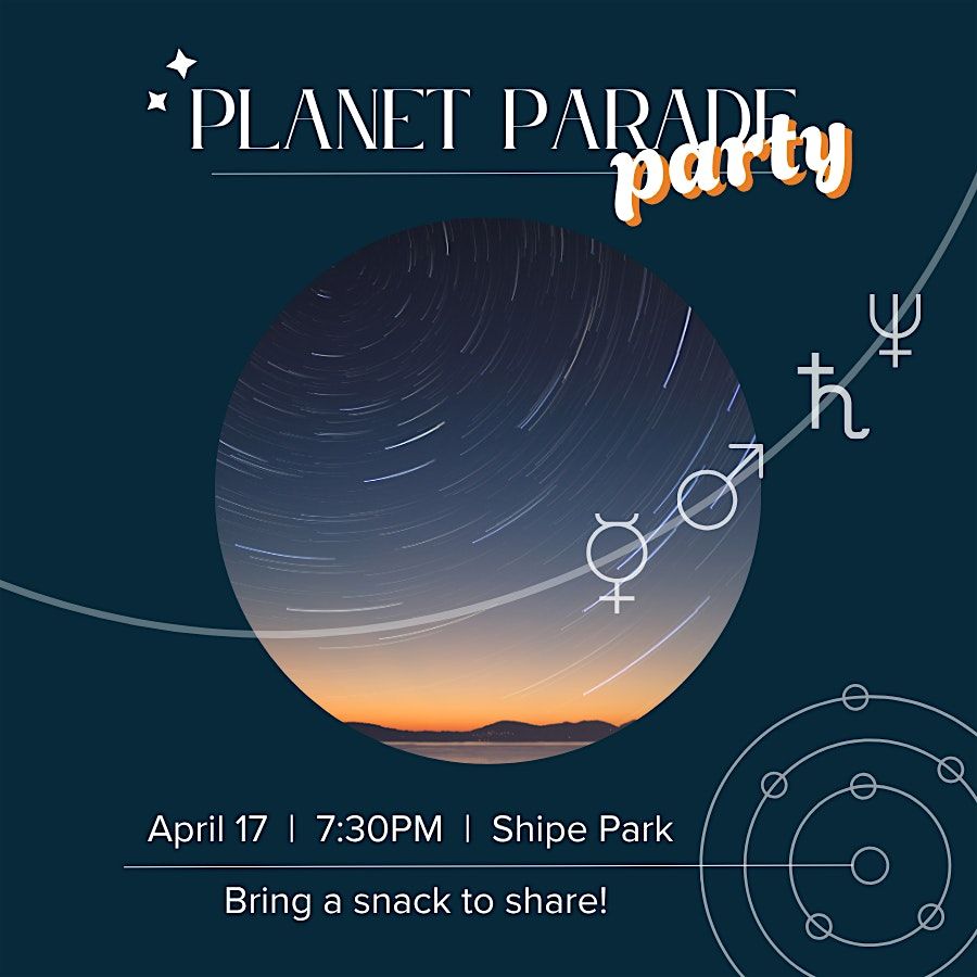 Join us at Shipe Park on Friday evening, April 17 for a planetary get-together featuring food and discussion. This event is open to all ages (but will feature an adult cocktail or two). Bring your friends, family, and a snack and/or drink to share! See you there!
