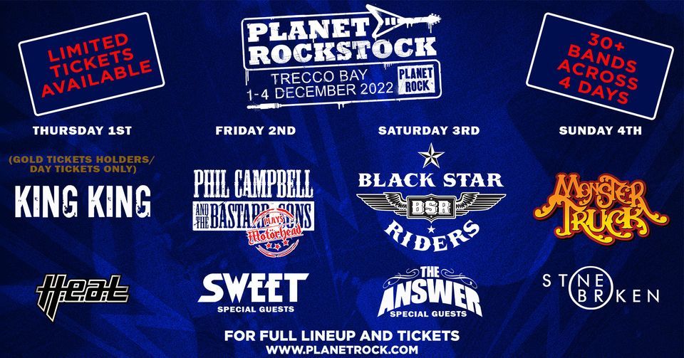 Planet Rock’s annual rock extravaganza once again takes place at the newly refurbished Trecco Bay Holiday Park in South Wales from Thursday 1st to Sunday 4th December 2022!Some day and weekend non-accommodation tickets are still available.