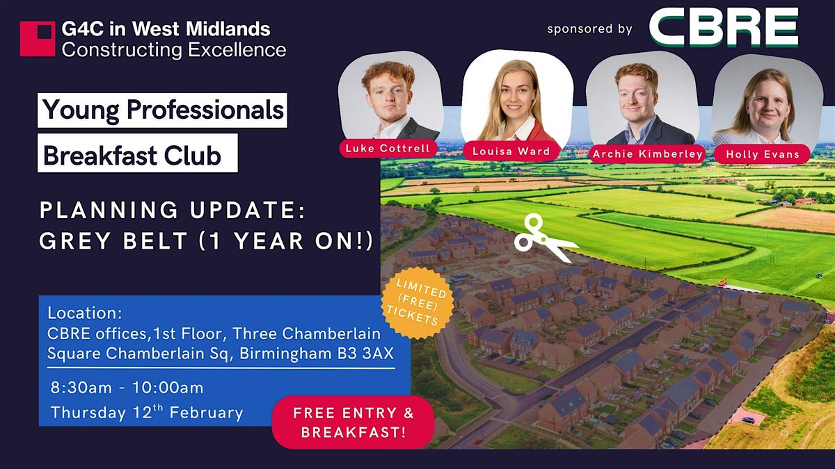 This month we are joined by CBRE’s Birmingham planning team, including our very own committee member Luke Cottrell, as well as Louisa Ward, Archie Kimberly, and Holly Evans; to explore how the government’s flagship policy has influenced the planning landscape one year on, alongside partaking in a interactive quiz!