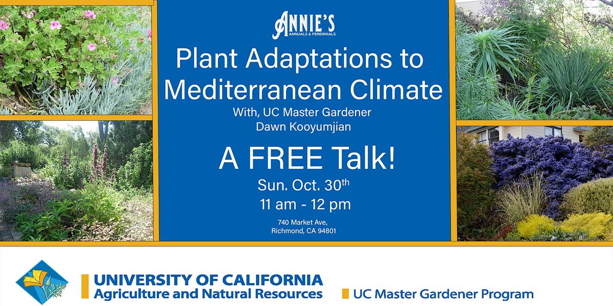 Whether or not we are in a drought, California receives little to no rain in the summer which is typical of Mediterranean climates. Come learn about our unique climate, and how plants have adapted to regions with little to no summer rain. A drought-tolerant garden need not be a lone cactus in a sea of rocks! You will come away inspired and with a deeper understanding of gardening with limited water.