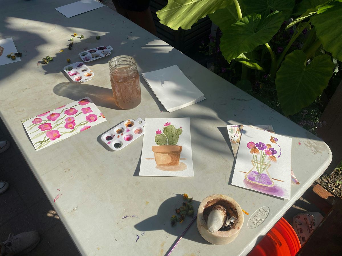 Harvest flowers and leaves, grind with mortar and pestle, add a dash of water, and transfer to a watercolor palette. These simple steps yield remarkably vibrant colors that change throughout the season. We will teach the basics for extracting color and then share the colors around the table. We will provide a brief introduction to some of the most ‘colorful’ plants and provide you the opportunity and tools to harvest and test your own. (Many of these are easy to grow reseeding annuals and perennials.) Finally, we’ll turn you loose with watercolor paper and you will have a relaxing time painting simple, (and possibly, more elaborate) plants and scenes. 90 - 120 minutes.