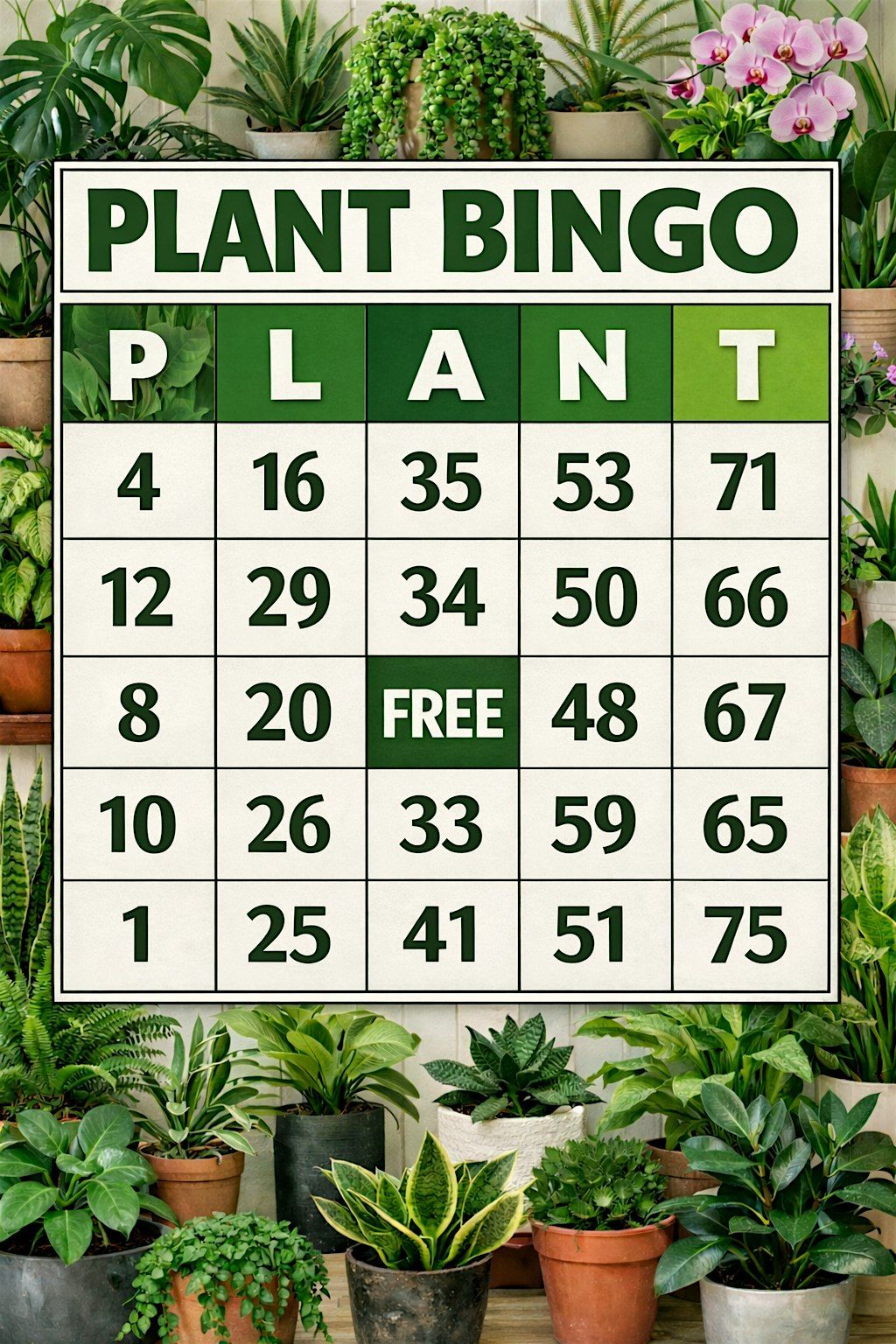 Get ready for a fun, in-person event all about plants and good vibes! Whether you're a green thumb or just curious, Plant Bingo is the perfect way to meet fellow plant lovers, enjoy some laughs, and maybe even win cool plant prizes. Don’t miss out on this chill gathering—bring your friends and your love for all things leafy!