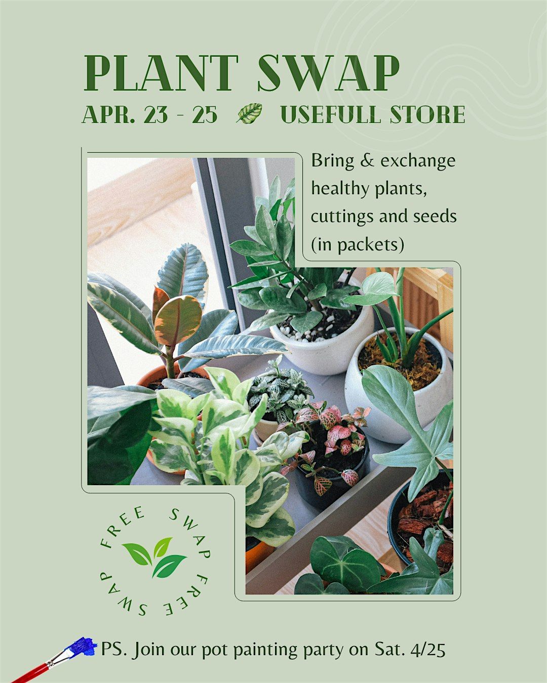 It's a fun, free and laid-back way to grow your plant collection and meet cool people. No pressure, just good, green vibes!