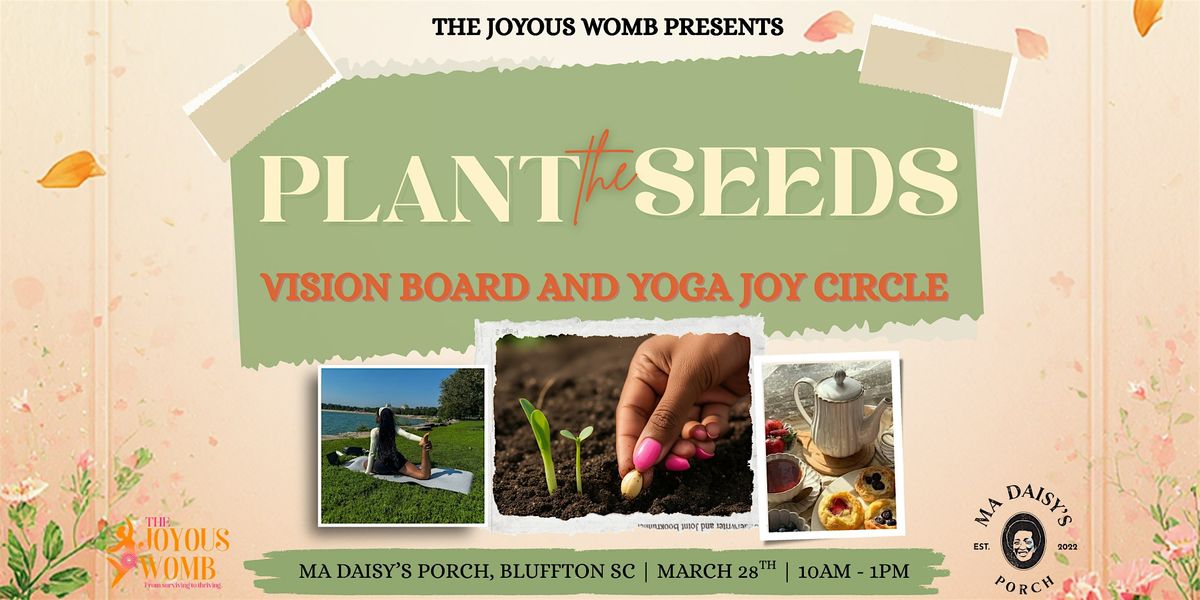 Details: π Friday, March 28th π 11:00 AM β 1:00 PM π Ma Daisy's Porch | Bluffton, SC π± Free & open to the public β Herbal teas, coffee, pastries & fruit by Backus Bakery β¨ Yoga mats & vision board supplies provided