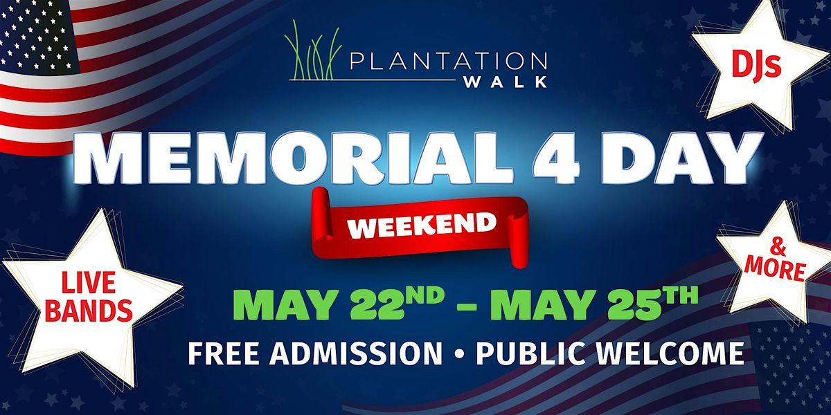 Plantation Walk's "Memorial 4 Day Weekend"! May 22nd - May 25th