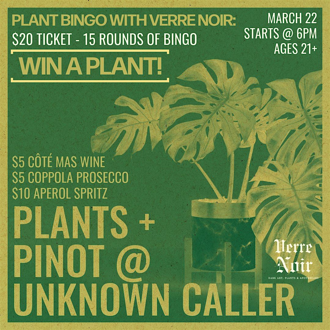 Join us March 22nd at 6PM for a night of Plant Bingo with our friends at Verre Noir! 🌿
