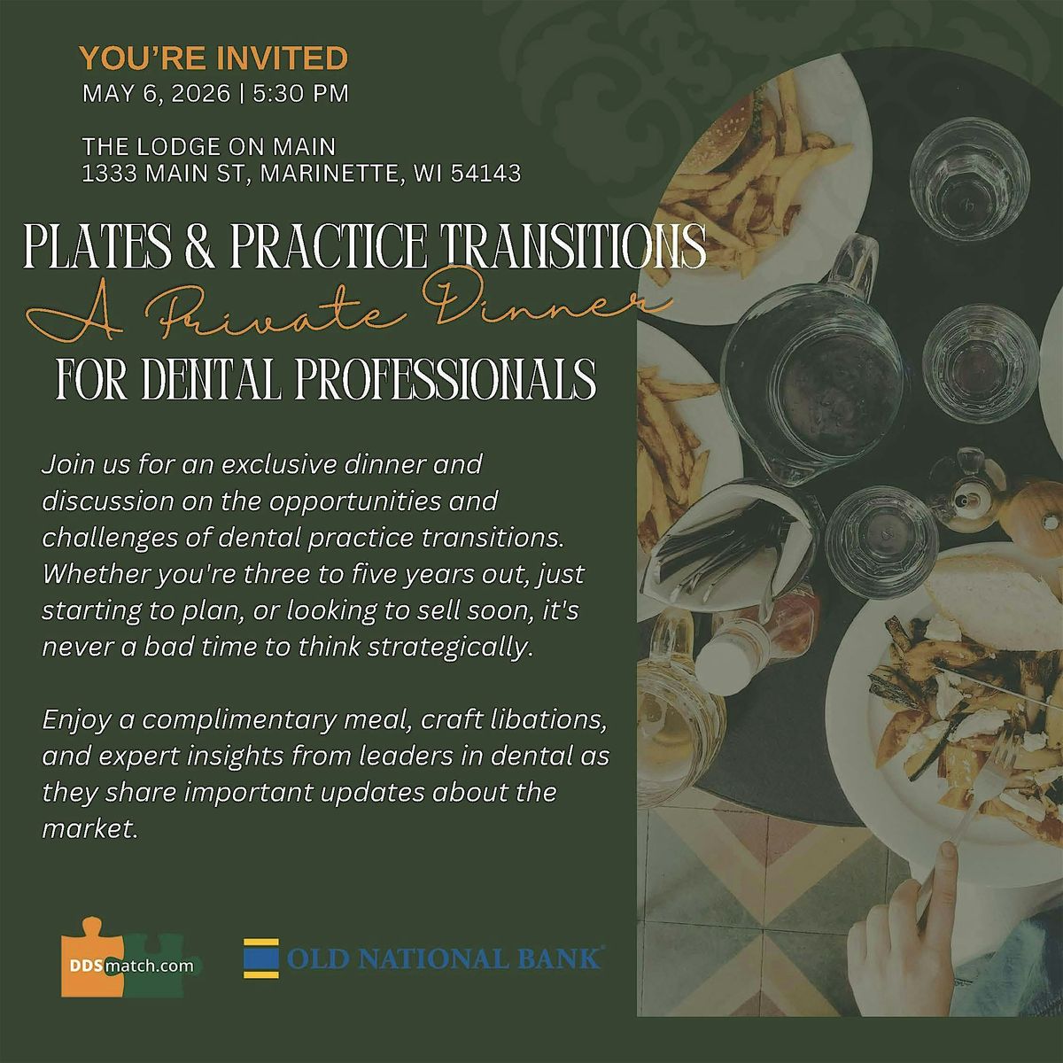 Join us for an exclusive dinner and discussion on the opportunities and challenges of dental practice transitions. Whether you're three to five years out, just starting to plan, or looking to sell soon, it's never a bad time to think strategically. Enjoy a complimentary meal, craft libations, and expert insights from leaders in dental as they share important updates about the market.