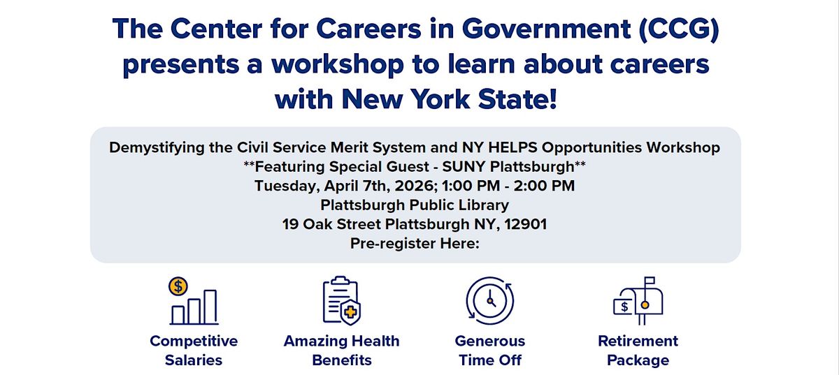 Attendees will get background information on the merit system, a review of appointment types, overview of the various agencies, a review of the exam process, learn how to access and navigate the necessary websites, and an overview of NY HELPS.