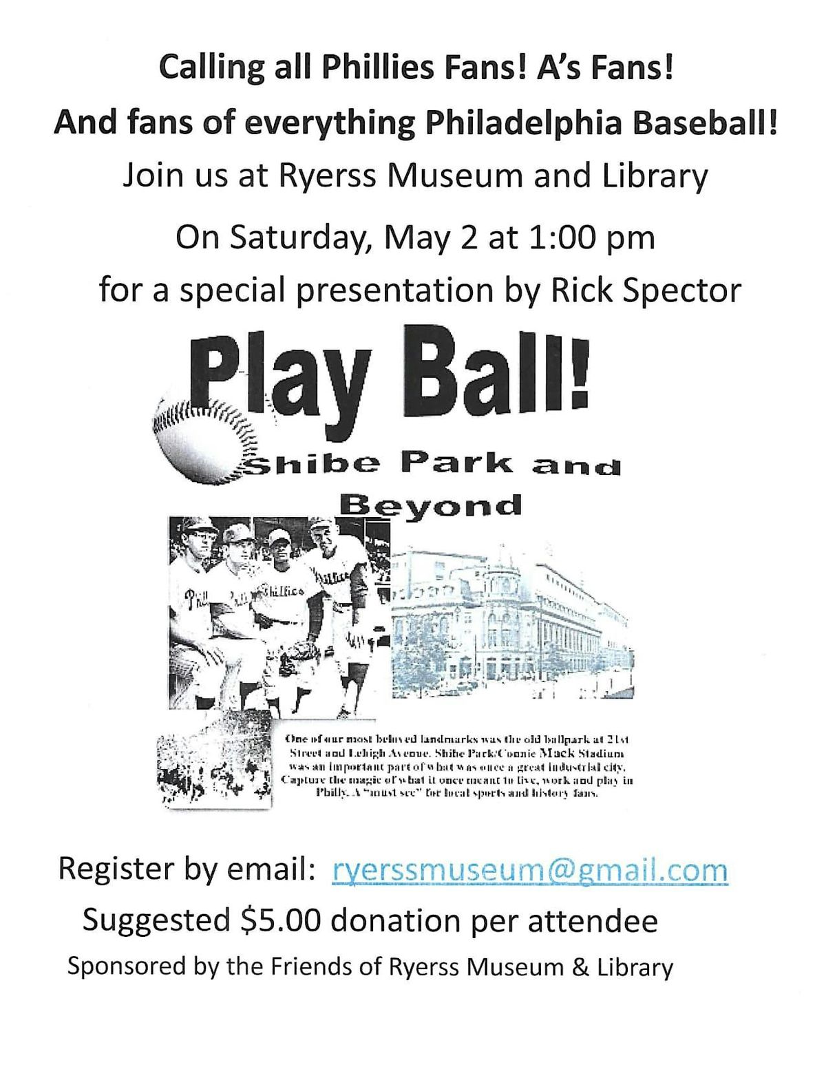 Are you a Philadelphia Baseball Fan? Are you old enough to remember attending baseball games right in North Philly? Come reminisce or learn about Philadlephia baseball's old stadium, teams and the neighborhood where baseball history lived in our city. Following this multimedia presentation by Rick Spector, there will be time to share personal memories and ask questions.