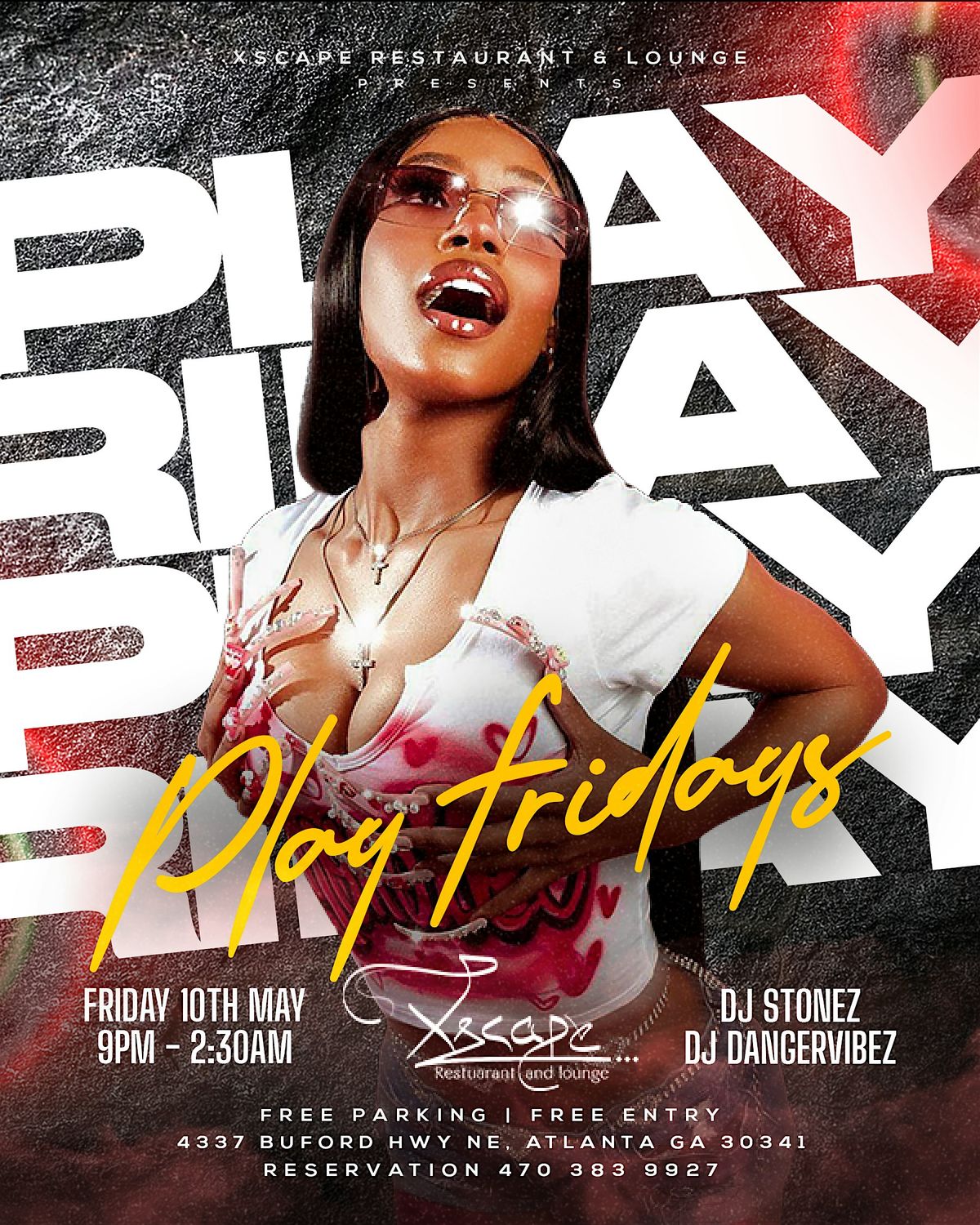 Welcome to Play Fridays at Xscape Restaurant & Lounge! Join us for a night of fun, music, and great vibes. Get ready to unwind and dance the night away with our amazing lineup of DJs spinning the hottest tracks. Whether you're looking to chill with friends or hit the dance floor, Xscape Saturdays is the place to be. Don't miss out on the ultimate weekend experience - come and Xscape with us!
