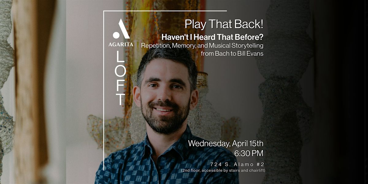 Catch the penultimate talk in Daniel’s lecture series at the Agarita loft, as he’ll take you through a musical story of patterns, sequences, and recall, featuring music by J.S. Bach, Francois Couperin, Ludwig van Beethoven, Nikolai Medtner, Claude Debussy, Maurice Ravel, and Bill Evans and more.