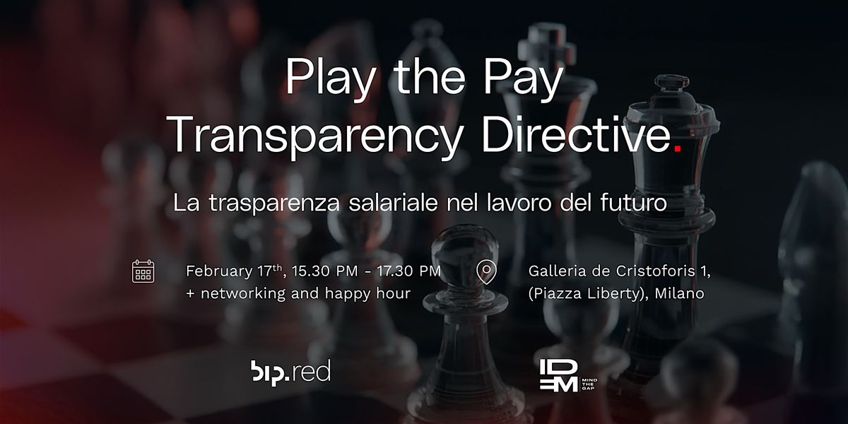 "Play the Pay Transparency Directive – La trasparenza salariale nel lavoro del futuro”, è l'evento che terremo il prossimo 17 febbraio presso la nostra sede di Milano Liberty dalle ore 15.30 in collaborazione con IDEM – Mind the gap, società di consulenza che offre soluzioni innovative per la parità di genere e la DE&I, utilizzando un approccio data-driven e modelli scientificamente validati.