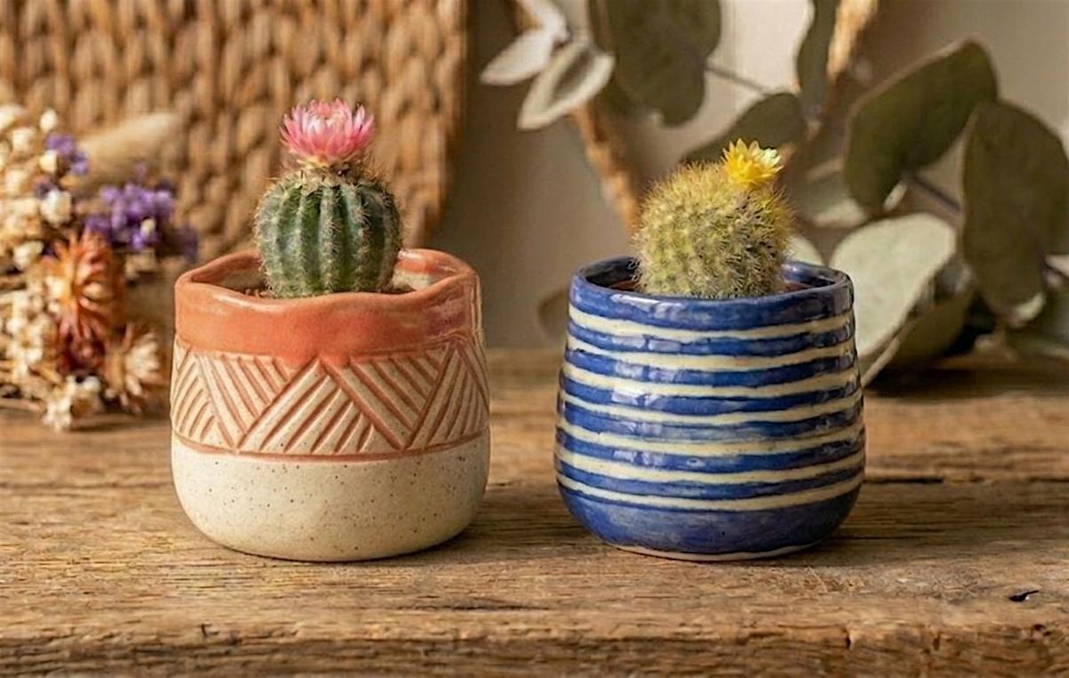 In this fun, relaxed session, you will Create a Pair of Cactus Pots using hand-building techniques of pinching, moulding, and carving before experimenting with a variety of slip-coloured glazes. You’ll then use the sgraffito method of decoration to carve unique patterns into the surface, revealing the clay beneath