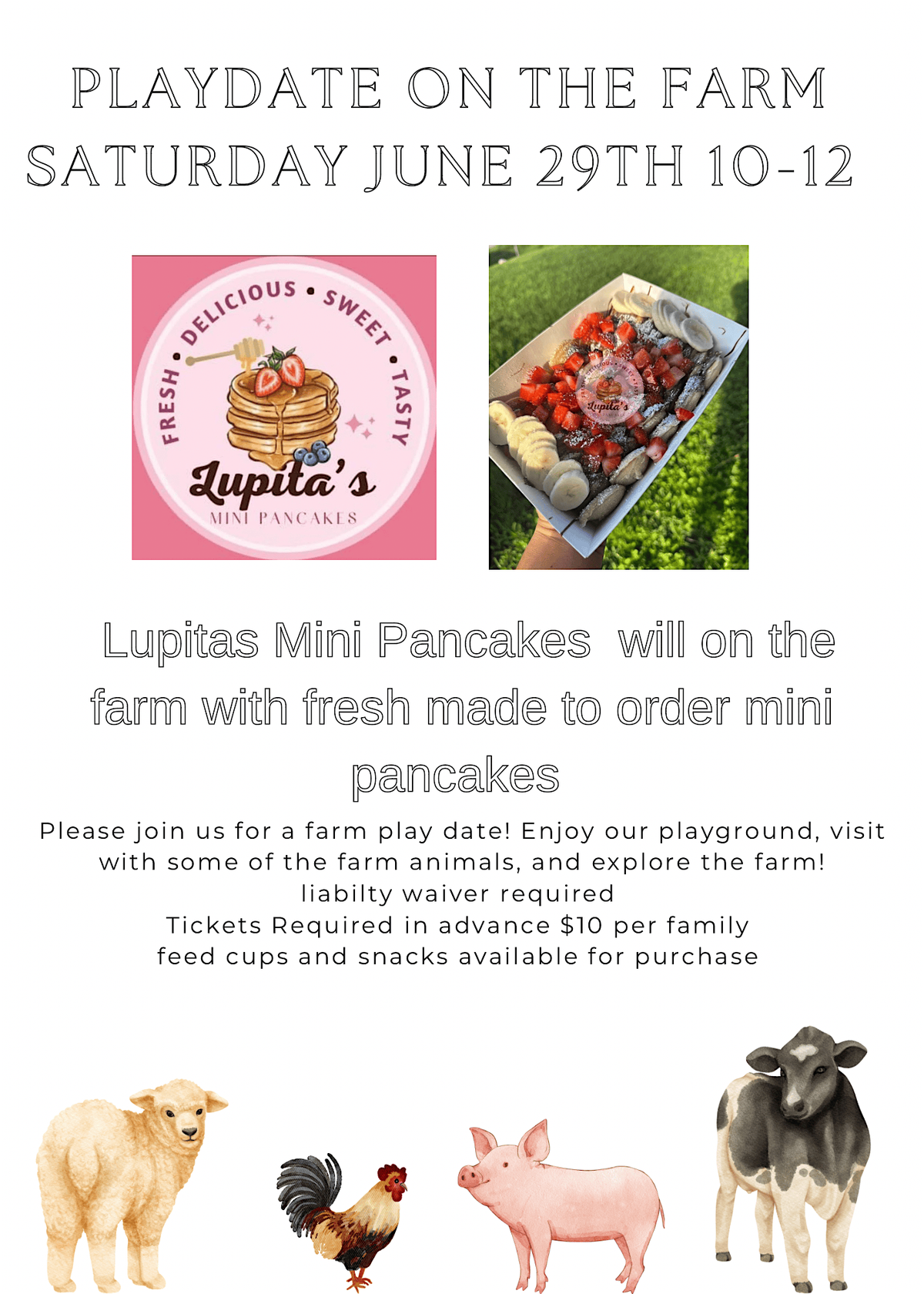 Come join us for a fun-filled open play date at the farm! Get ready to enjoy a morning on the farm. The playground will be open and you can walk around and visit with our farm animals. The event will take place at 5450 Higginbotham Rd on our working family farm. It's the perfect opportunity to spend quality time and allow your kids to meet other kids and get them outside and playing.