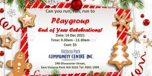 Victoria Park Community Centre Playgroup End of Year CelebrationHave you ever wanted to join a playgroup, meet new people and have a safe and fun place for your children to play? The Victoria Park Community Centre hosts a playgroup twice a week and we welcome new members all the time, if you are thinking of joining a group, then come along to our end of year celebration to find out all things playgroup and other programs the Centre offers. We are also collecting gifts for a range of community groups and individuals in need for our Vic Park Christmas Appeal so if you are able, it would be great if you could bring a new unwrapped gift along. For more details please see https://www.vph.org.au/