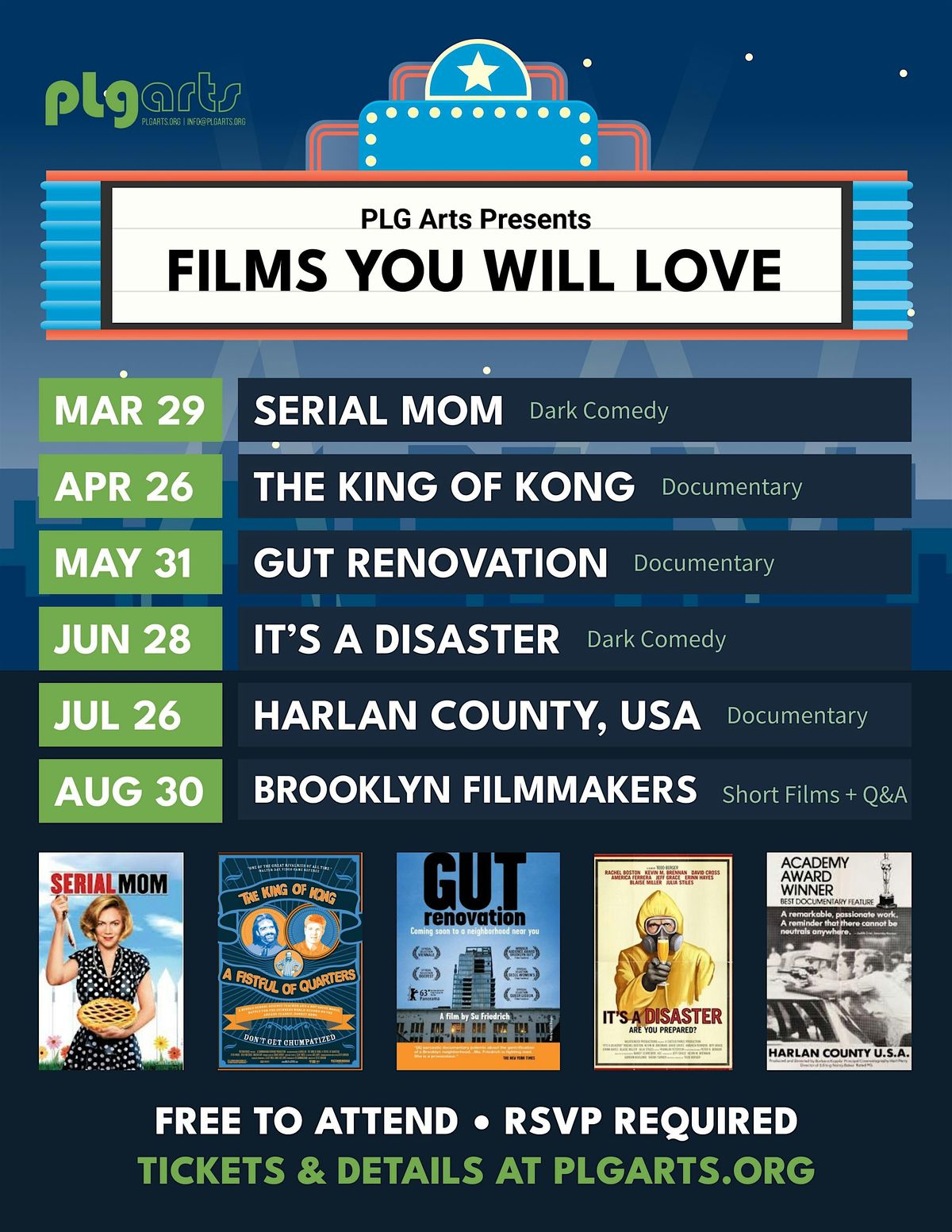 PLG Arts Presents: Films You Will Love! Curated titles featuring cult classics, dark comedies, inspiring documentaries, short films from local directors and more!
