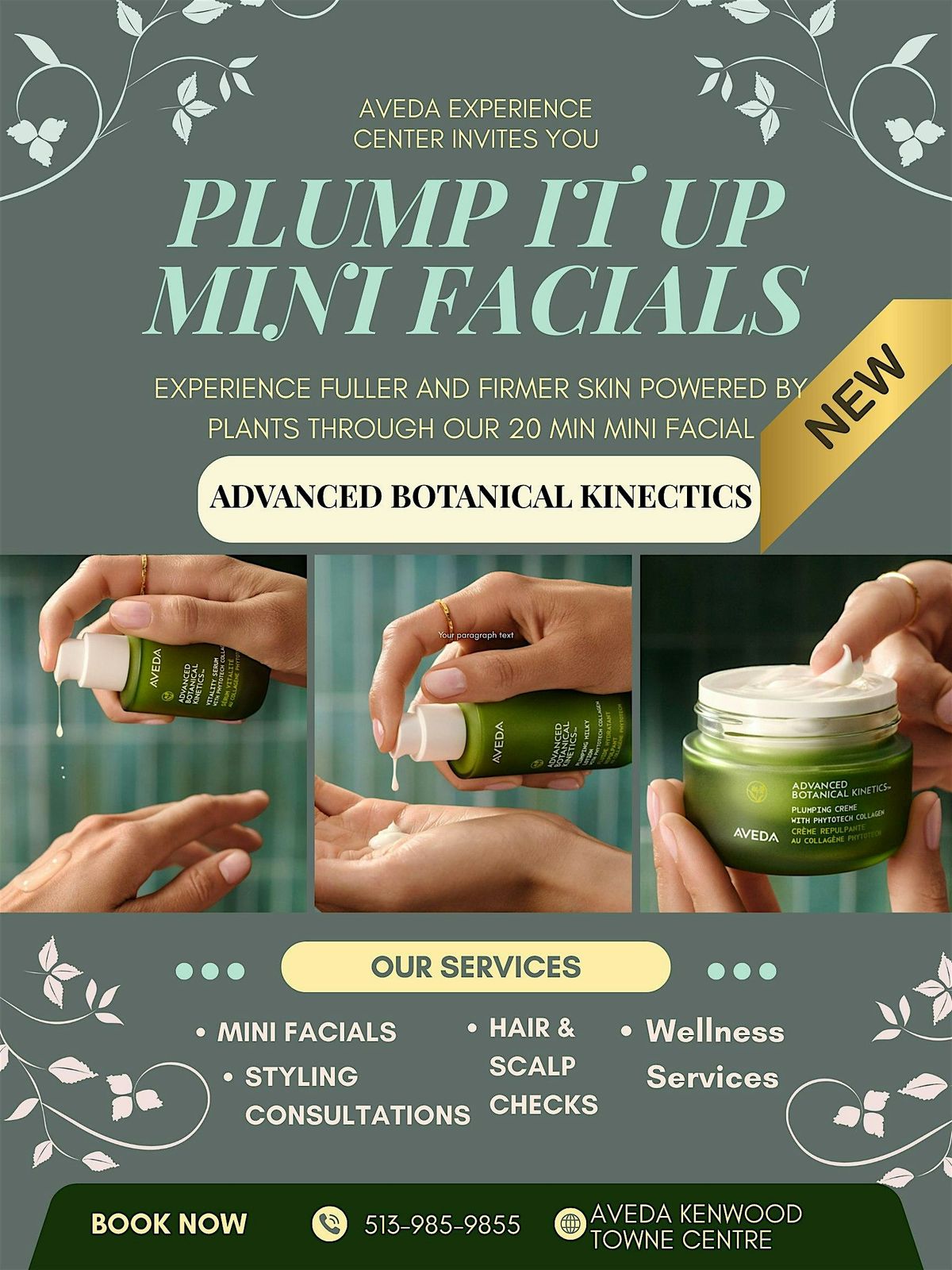 Welcome to **PLUMPT IT UP- MINI FACIAL EVENT**! Join us for a day of pampering and relaxation at our Aveda experience center. Get ready to experience plant based collagen and retinol to achieve hydrated, plump and revived skin during these dry winter months. Don't miss out on this opportunity to indulge in some self-care and enhance your natural beauty. See you there! Free gift with purchase!