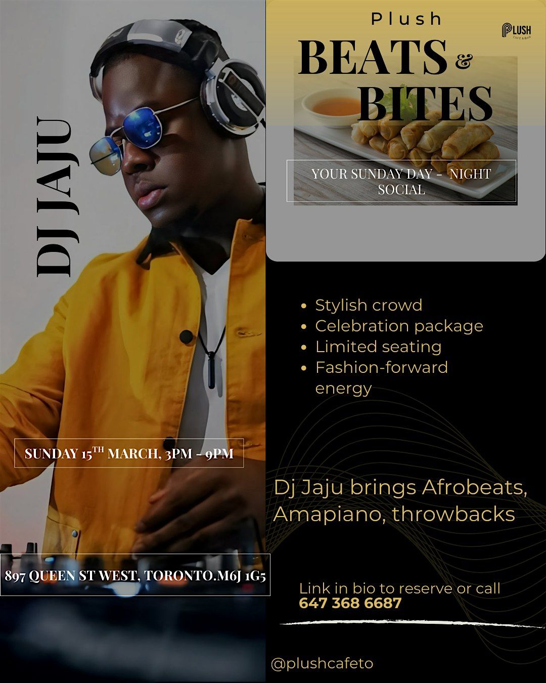 Plush Beats & Bites is your Sunday day-to-night social — where elevated bites meet curated DJ energy.