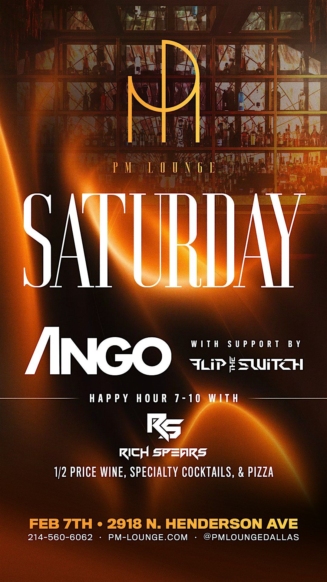 Keywords: PM Saturdays, Henderson Avenue nightlife, Ango DJ, Flip The Stitch, PM Lounge Dallas, Dallas nightclub, cocktail bars Dallas, Saturday night Dallas, Henderson Ave bars, Dallas events
