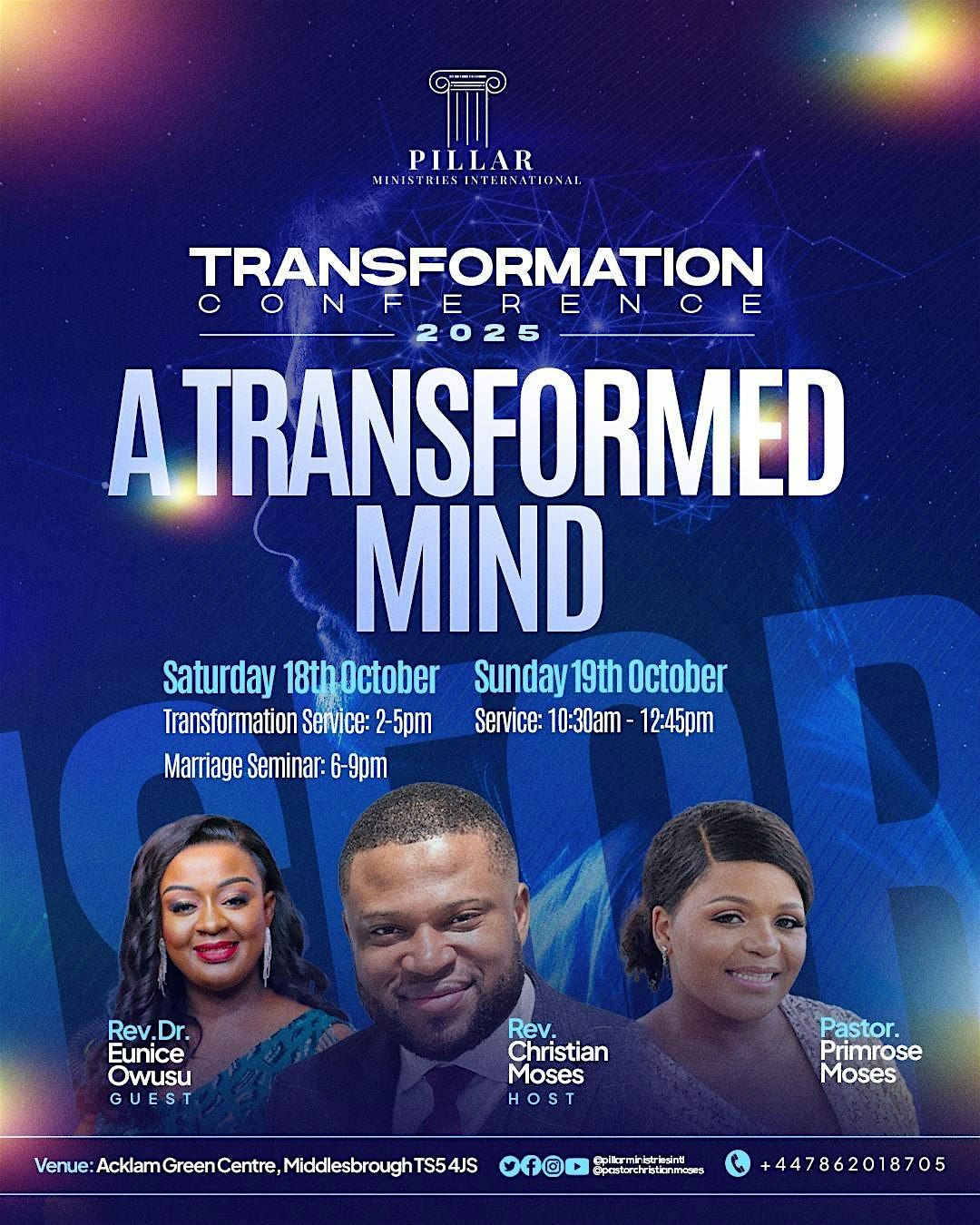 It’s time to be renewed, be empowered & be transformed. Join us for the Transformation Conference with our pastors & Dr. Rev. Eunice OwusuAgenda