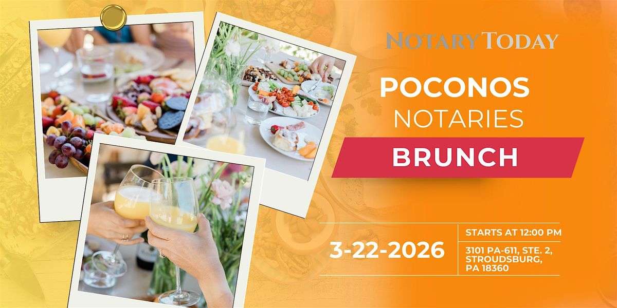 Join us for a fun and casual brunch at 3101 PA-611 ste 2! It's happening on March 22, 2026 at 12:00 PM (Eastern Daylight Time). Come meet fellow notaries, share stories, and enjoy some great food in a relaxed setting. Don't miss out on this chance to connect and unwind with the community. See you there!