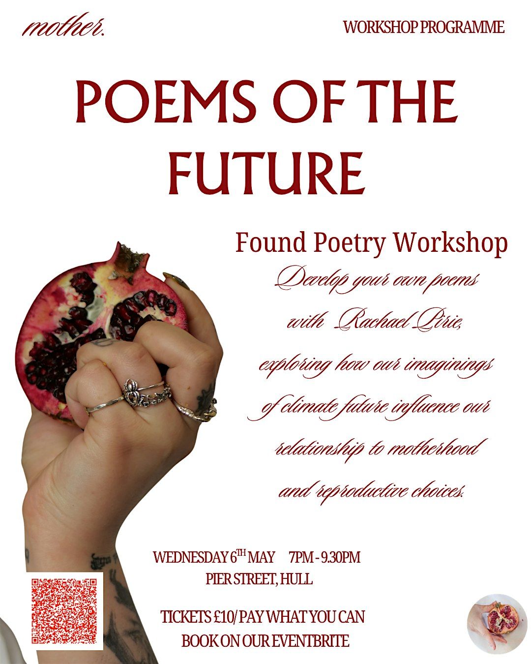 In this workshop you will develop your own poems by joining theatre practitioner and academic Rachael Pirie in a found poetry workshop, exploring how our imaginings of climate future influence our relationship to motherhood and reproductive choices.