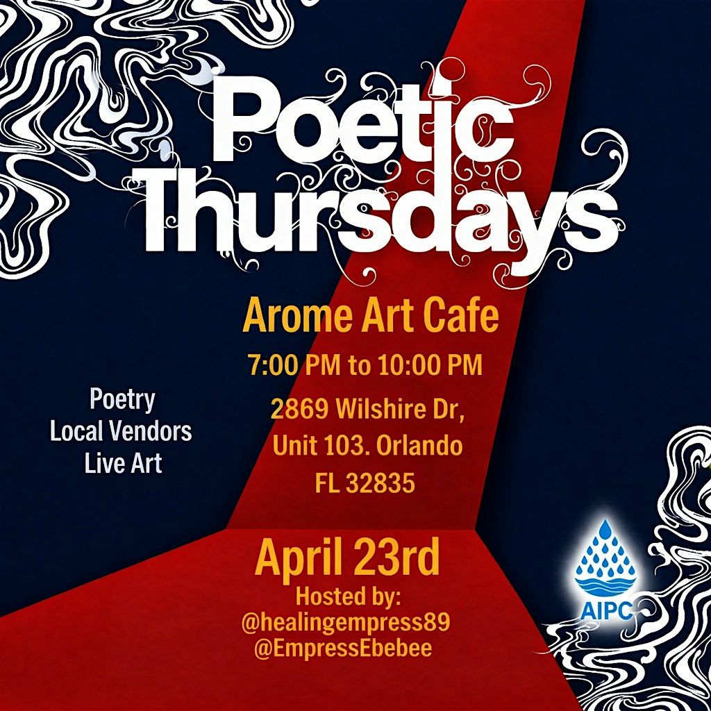 Step into an evening where words flow, creativity thrives, and community comes alive. Poetic Thursdays is more than just an open mic—it’s a gathering of voices, artists, and visionaries in a safe and uplifting environment.