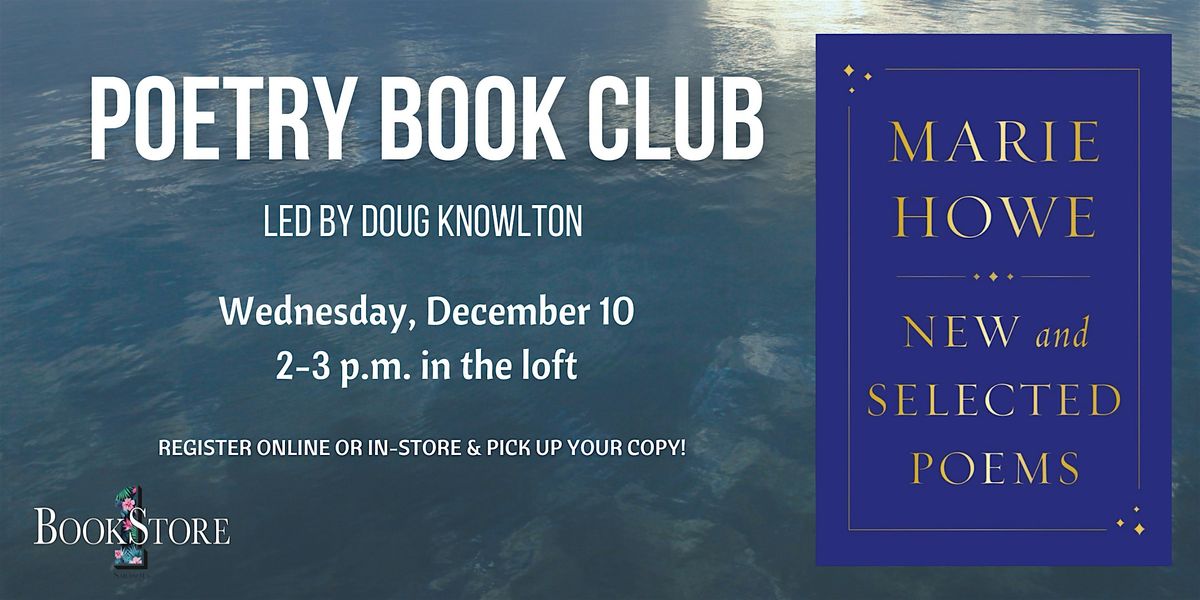 This monthly book club led by Doug Knowlton is for those who like to read and discuss poetry. It celebrates the integral role of poets and poetry in life and literature. December's selection is MARIE HOWE'S NEW AND SELECTED POEMS.