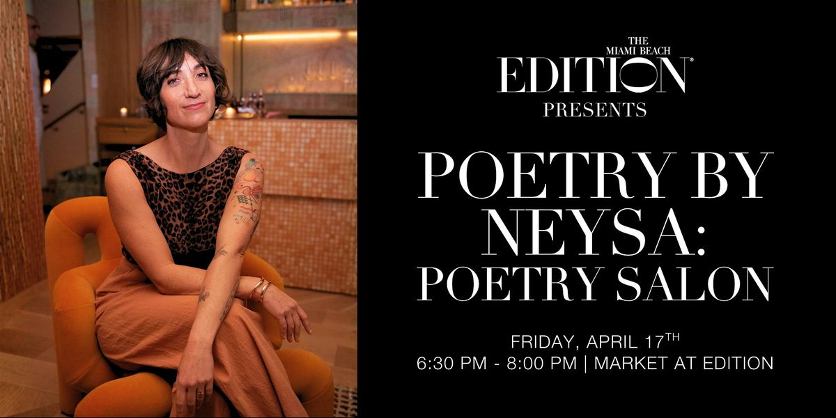Join local author and founder of Heart-Centered Writing, Neysa King, at The Miami Beach EDITION to Celebrate National Poetry Month in an intimate evening of uplifting poetry, conversation, and reflection.
