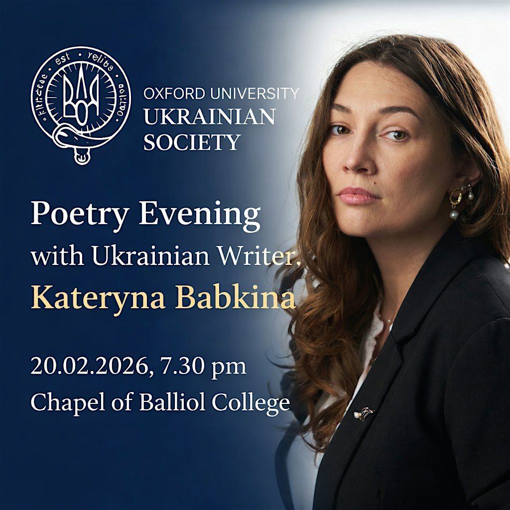 Please join us for a literary evening with the Ukrainian writer, poet, playwright, and public intellectual Kateryna Babkina, hosted by the Oxford University Ukrainian Society.
