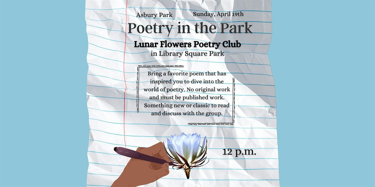 Lunar Flowers Poetry Club presents Poetry in the Park as a stop on the Asbury Park Poetry Crawl on Sunday, April 19th at 12pm!