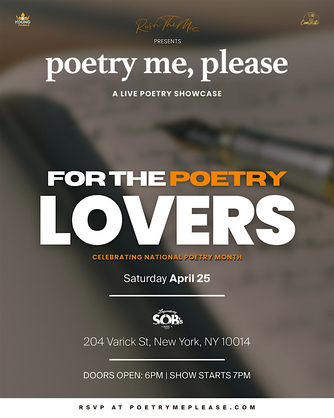 Celebrating National Poetry Month, we're bringing you an experience you won't forget with another incredible installment of the PMP Poetry Series! Get ready for an electric night featuring raw spoken-word performances, live music that hits different, handcrafted drinks, and a full-service seated dinner to keep you satisfied all night. Pull up and be part of this amazing celebration where poetry, music, and community come together!