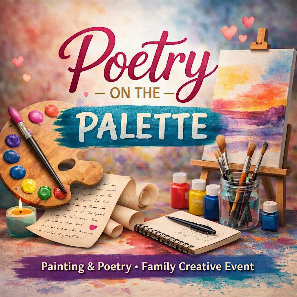 Join us for a beautiful and creative experience where words and colors come together in a space designed for connection, expression, and inspiration. Poetry on the Palette invites families to enjoy a relaxed, welcoming atmosphere where creativity flows freely.